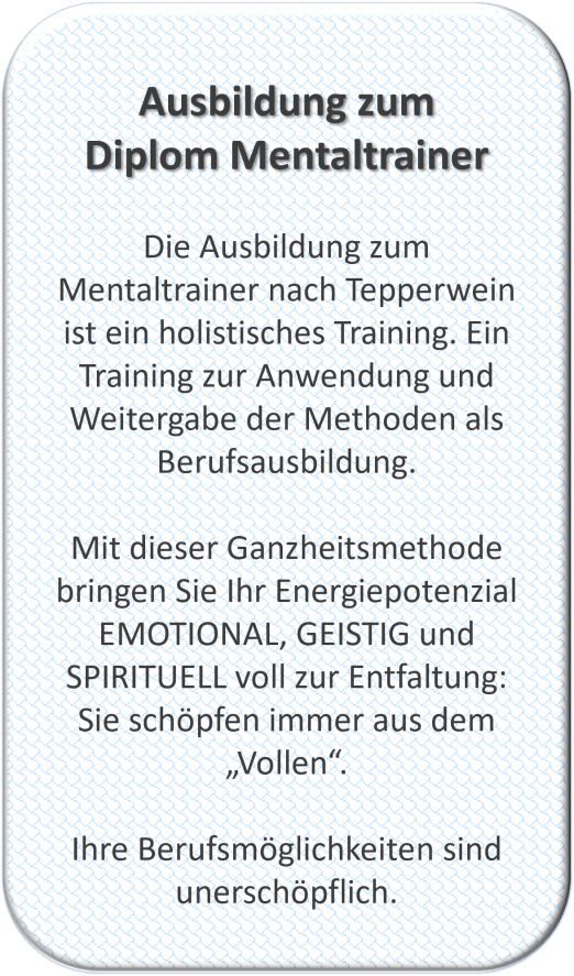 Die Ausbildung, sowie die Vergabe der Lizenz erfolgt nur durch die Tepperwein-Mentalakademie.