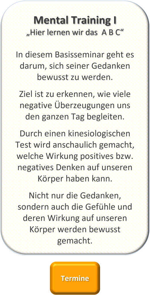 Mentaltraining nach K.Tepperwein ist ein gesamthaftes Konzept, um mit unseren Gedanken unser Leben nach unseren Wünschen zu gestalten.